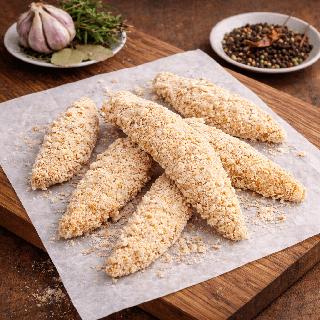 Chicken fingers from Solsonès combine the quality of exceptional raw ingredients with a preparation designed for enjoyment without compromising on origin. Sourced from chickens raised in the natural surroundings of Solsonès, the meat stands out for its juiciness, tender texture, and clean flavor — a true reflection of careful rearing and balanced feeding.